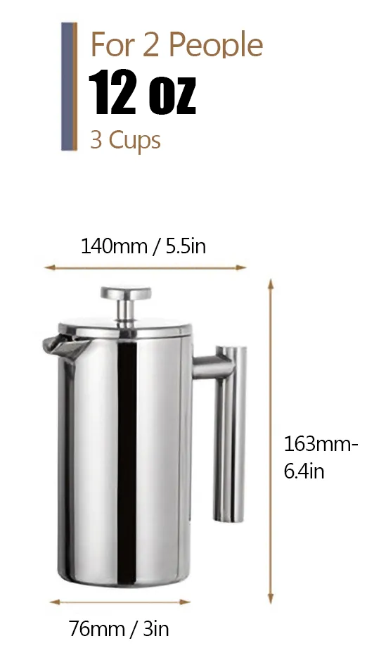 - Share the Experience: Available in three sizes—12oz, 27oz, and 34oz—this French press is perfect for intimate mornings or lively gatherings. Brew once, pour for many, and let the conversation flow.